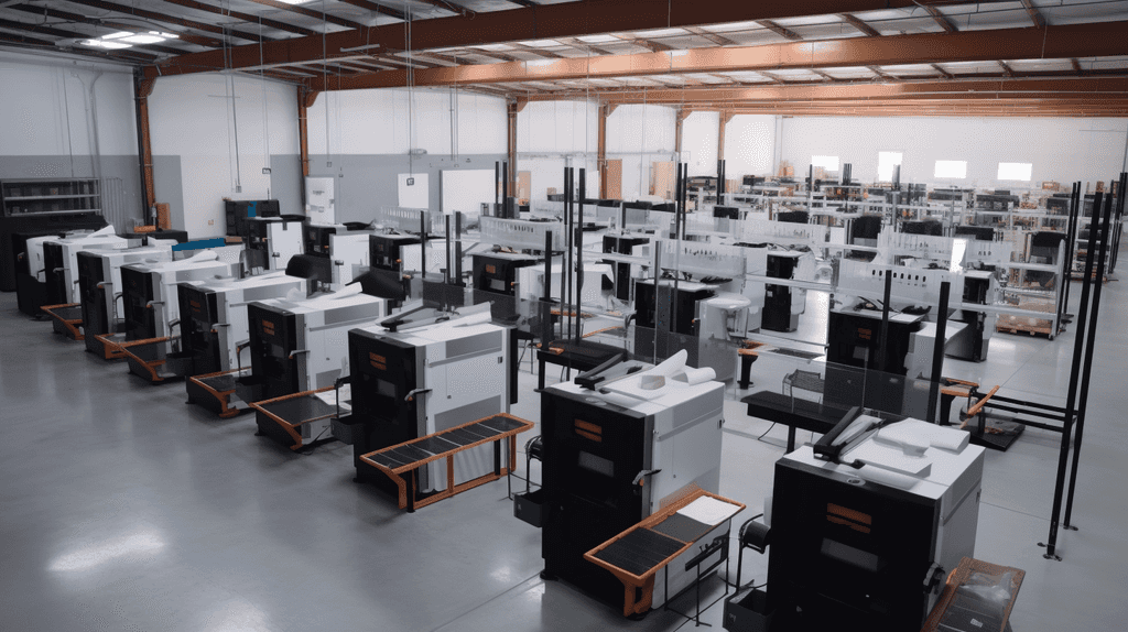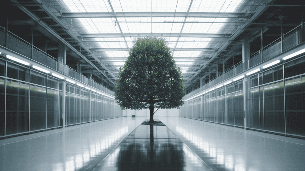Accentuate the positive impact of Fieldnode's digital inventory solutions on the environment and supply chain efficiency by incorporating images of pristine, well-organized manufacturing facilities, localized production of spare parts, and minimized waste.
