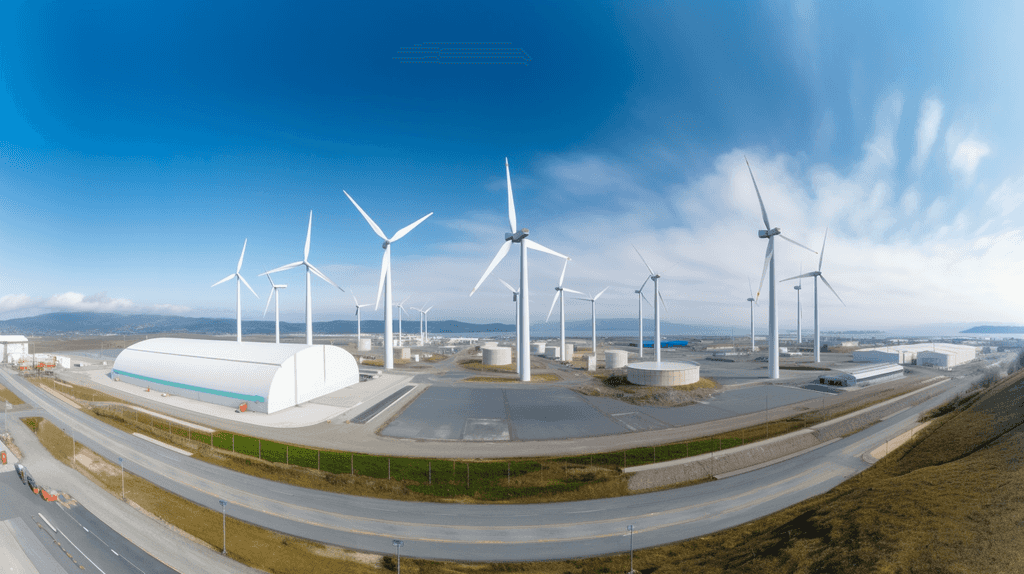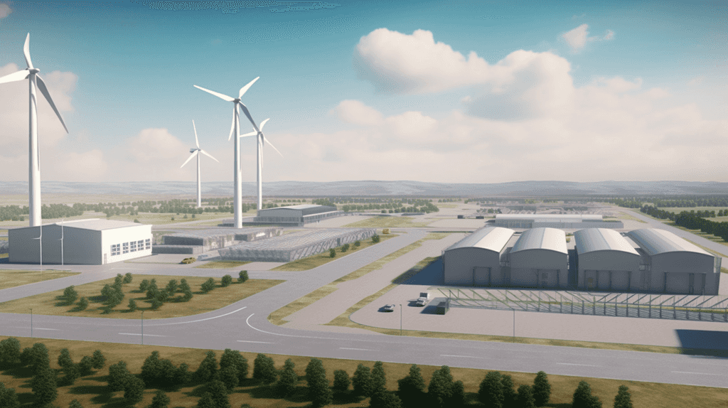 To further emphasize the company's dedication to sustainability, include images that represent a reduced carbon footprint, such as electric vehicles, solar panels, or wind turbines.