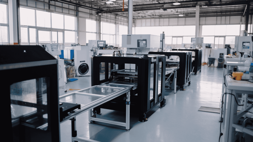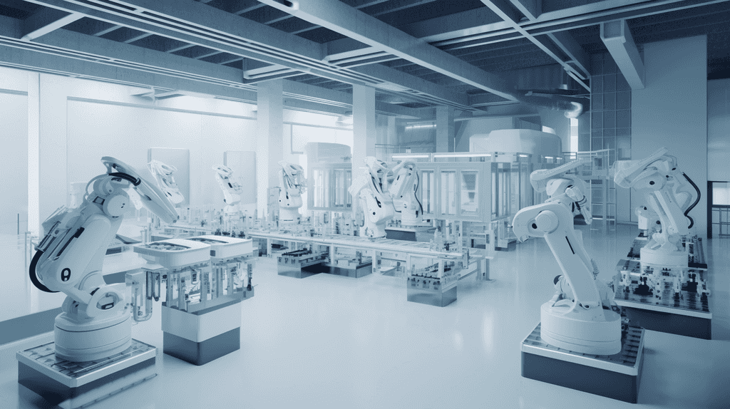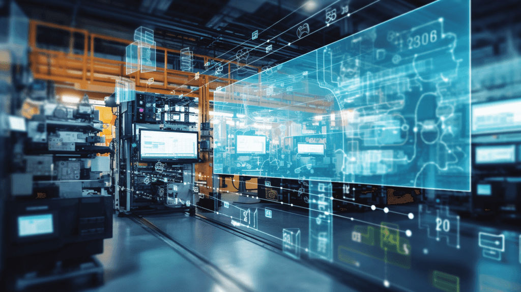Consider featuring images of digital interfaces, smart devices, 3D printing, and automated manufacturing systems.